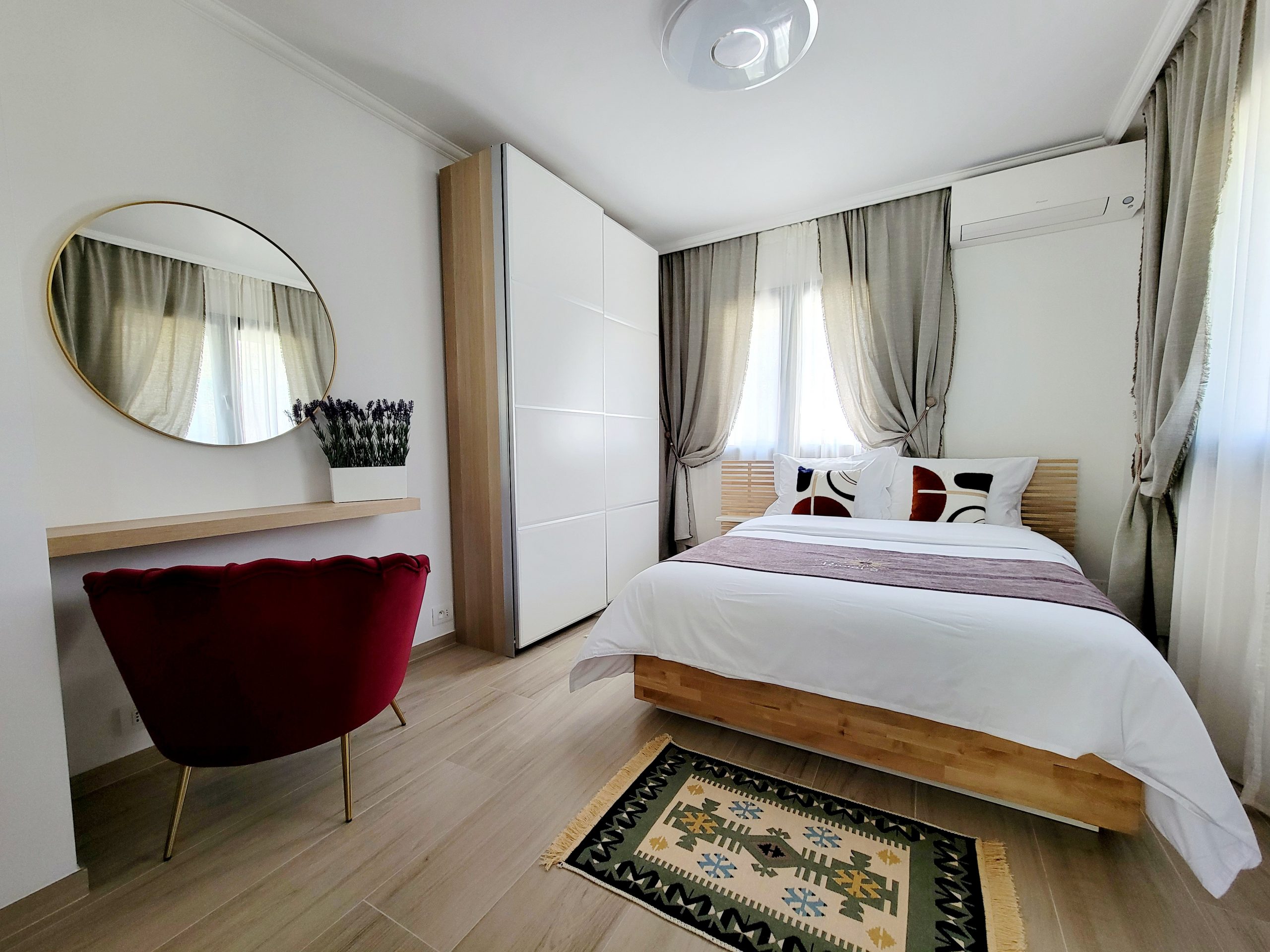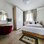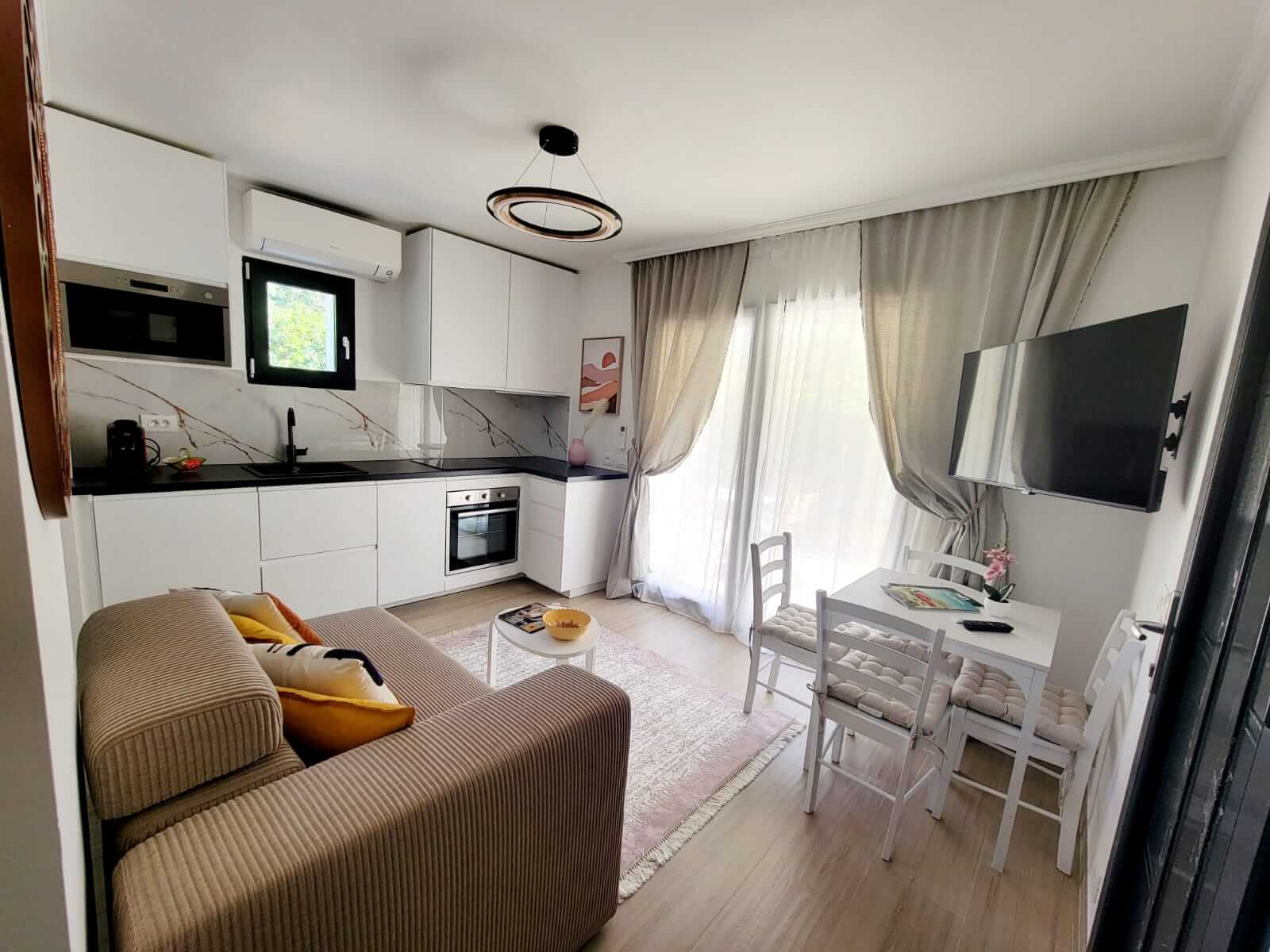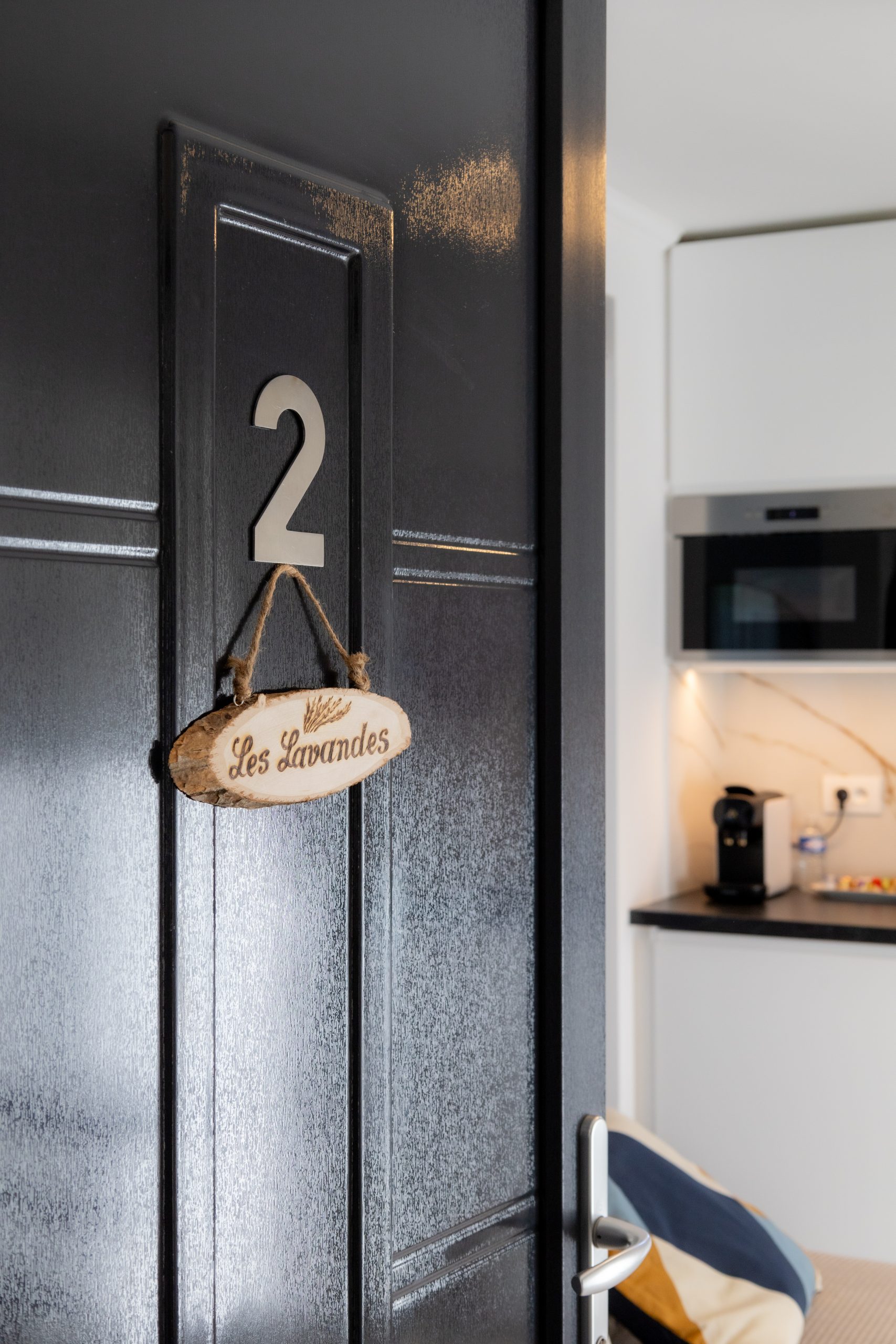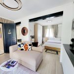 Le studio est composé d’une chambre avec 1 lit double en 140×200, d’une cuisine bien équipée, ouverte sur le séjour, qui comprend une plaque de cuisson, un réfrigérateur/congélateur, un lave-vaisselle et divers ustensiles de cuisine. Vous pourrez également vous faire du café ou du thé grâce à la machine Nespresso et à la bouilloire, tous deux mis à votre disposition.