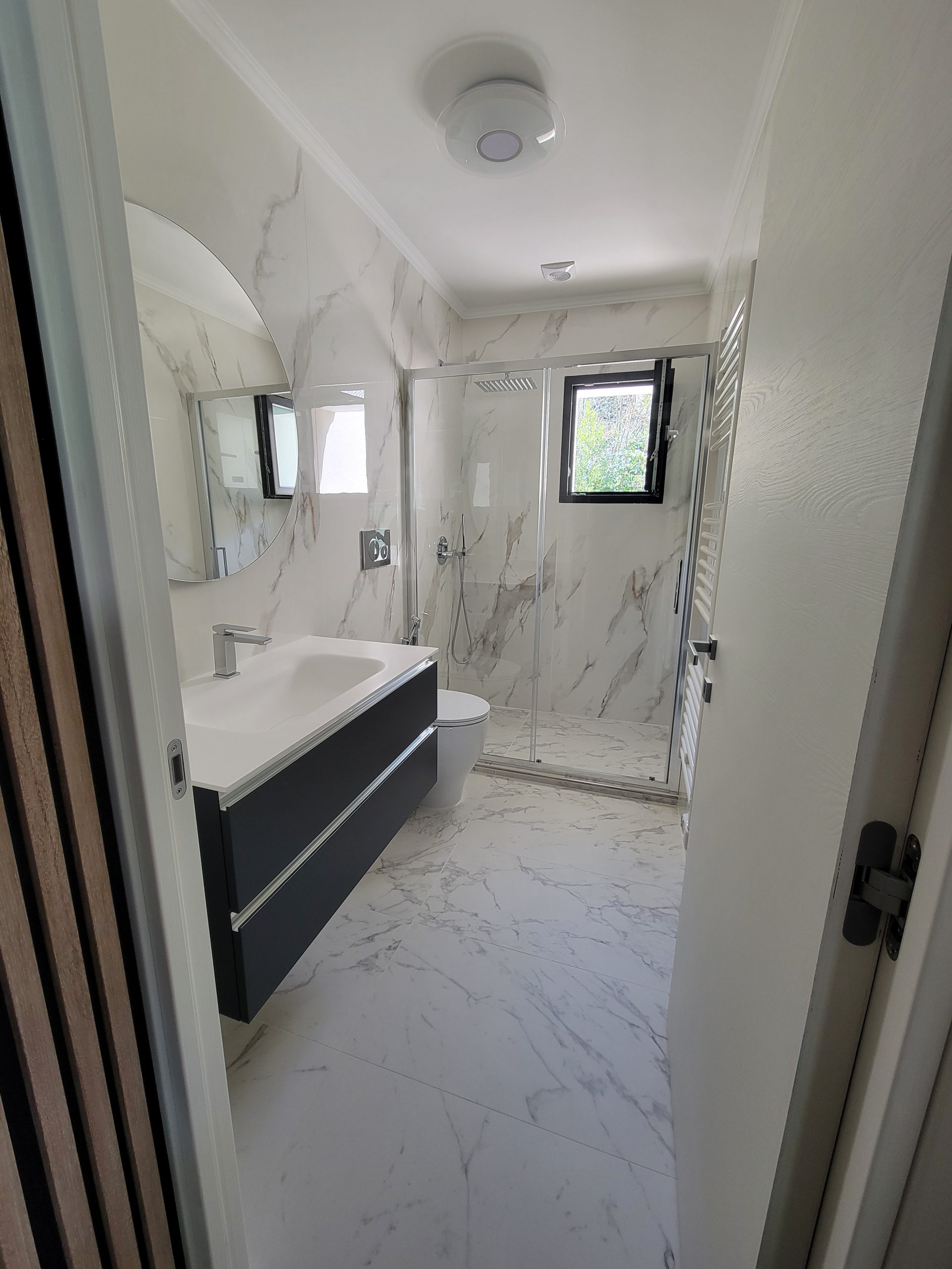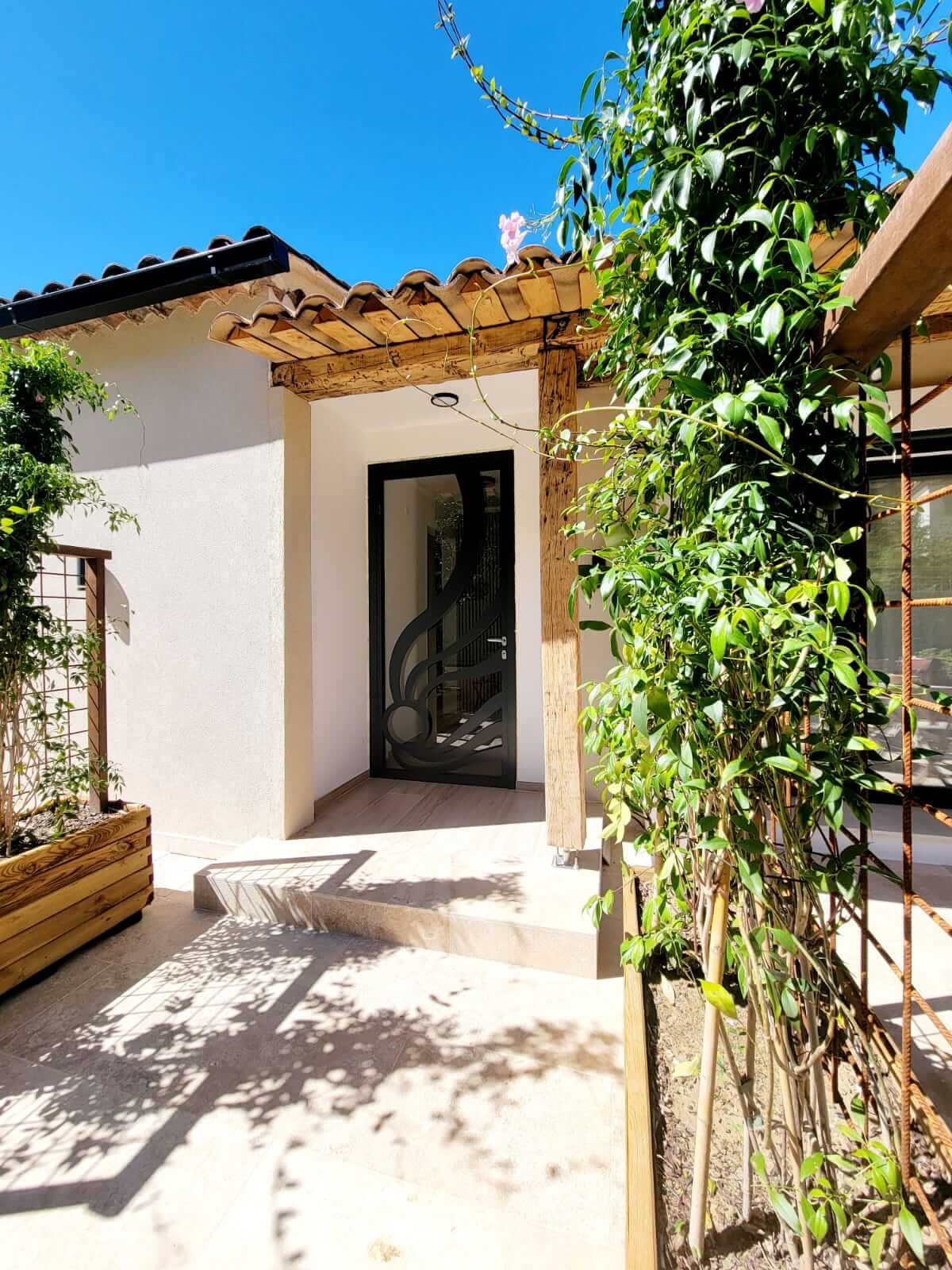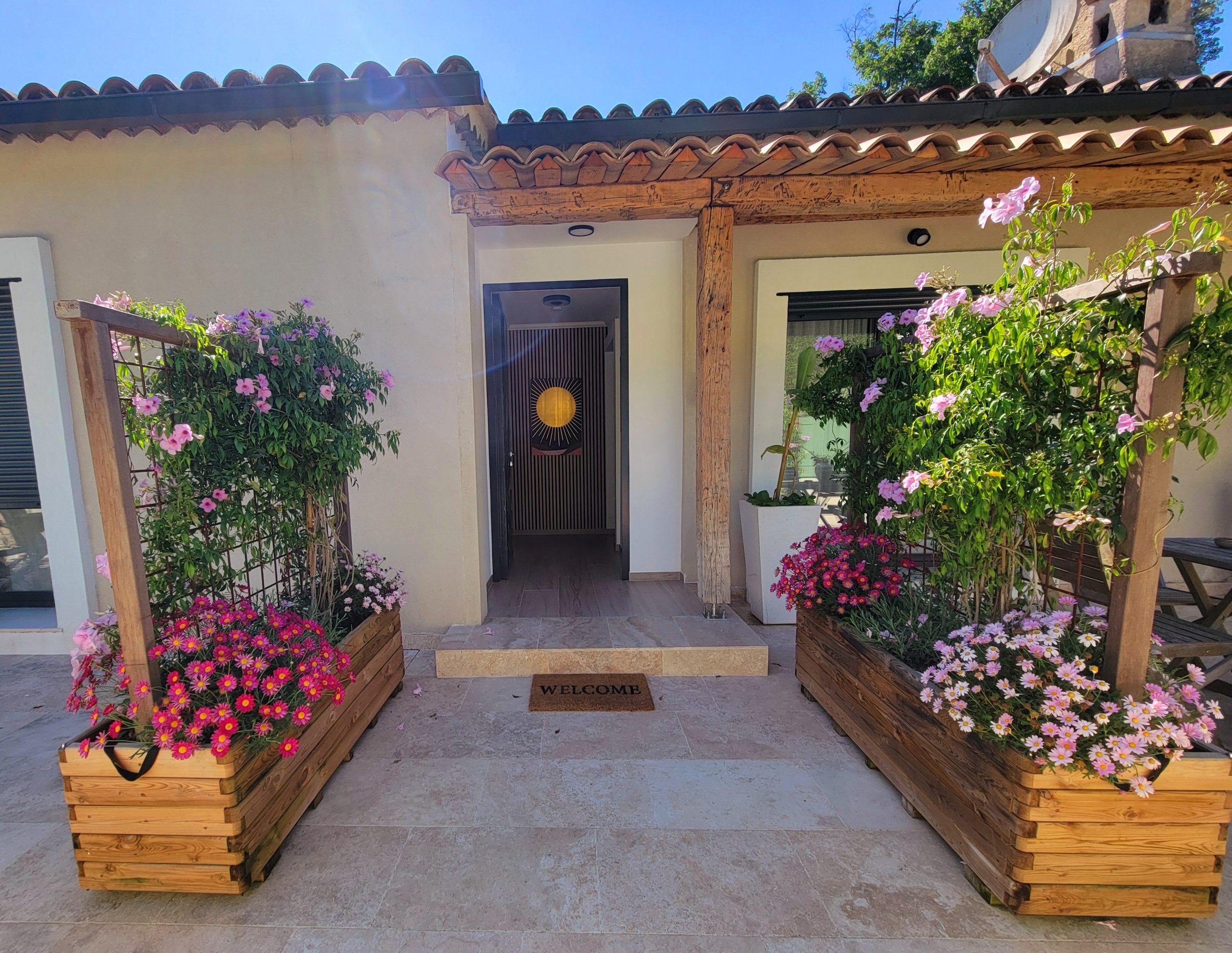 Le studio climatisé (réversible; idéal été comme hiver), comprend également une télévision à écran plat, une salle de douche privative à l’italienne (équipée d’un lave linge/sèche linge) ainsi qu’une terrasse avec vue sur le jardin.