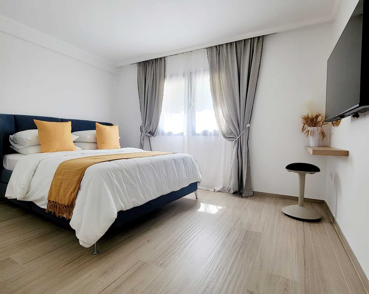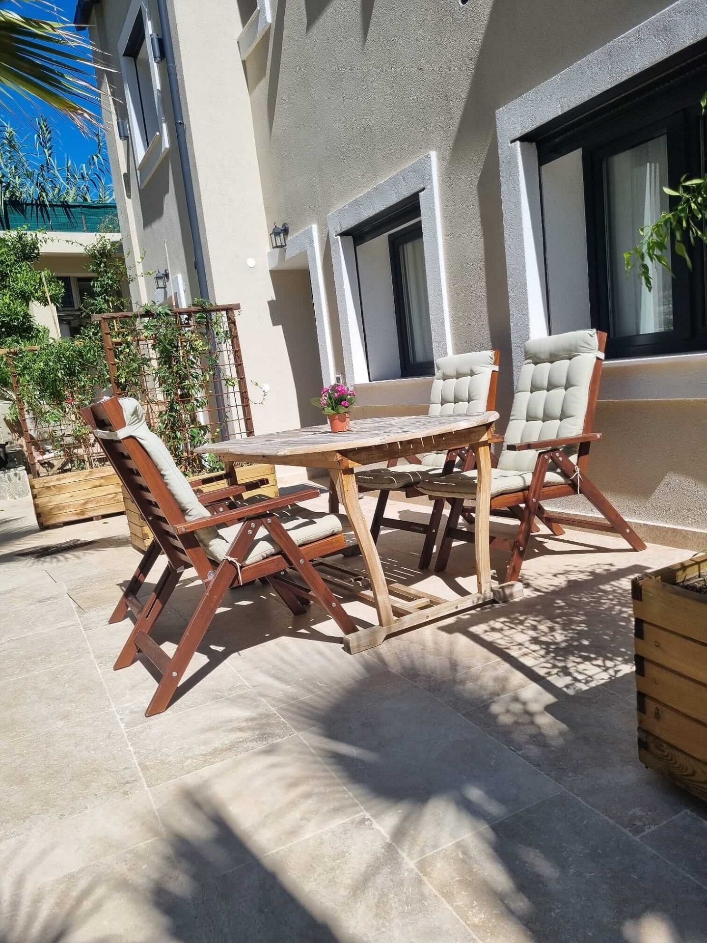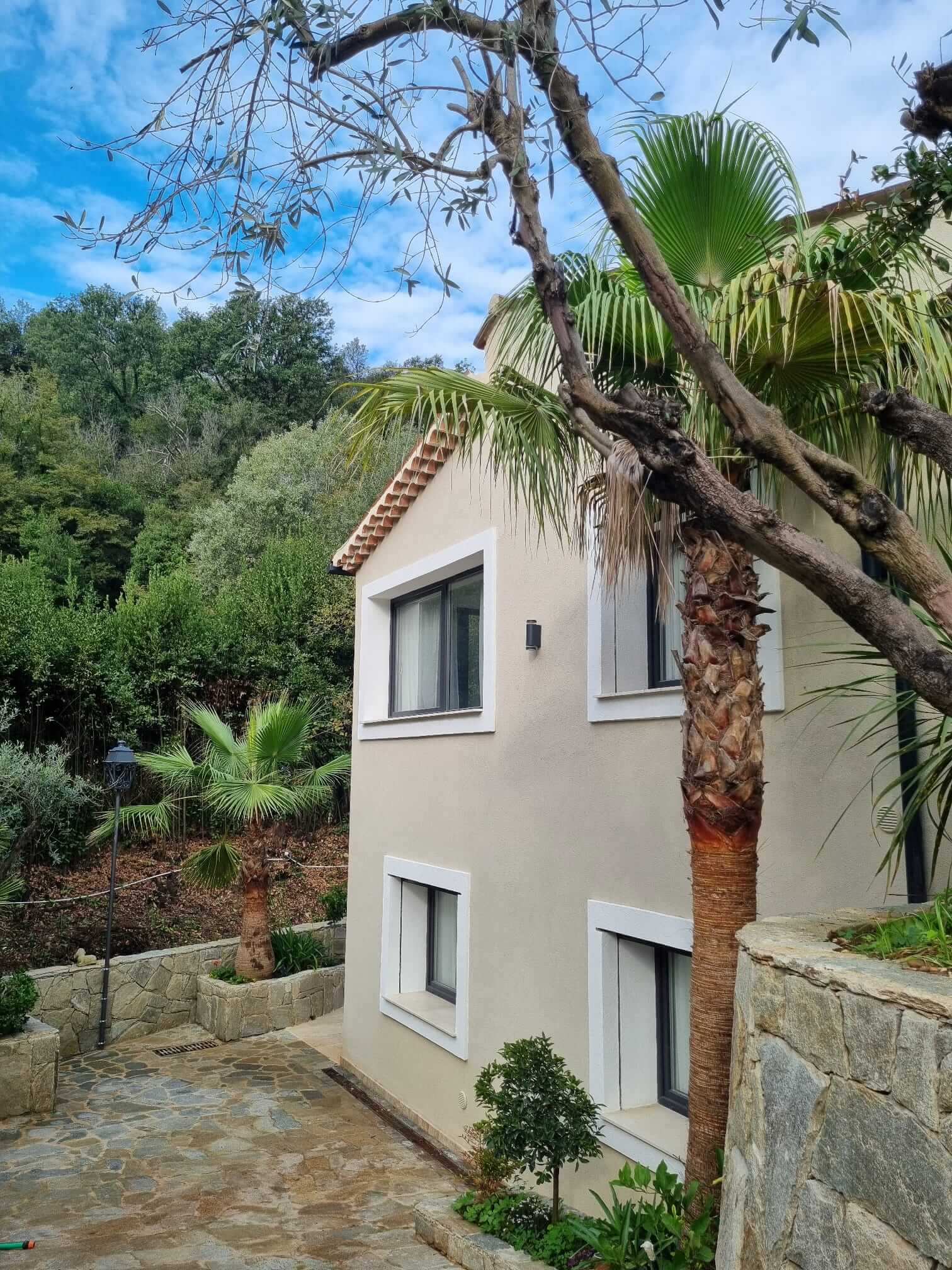 L’appartement climatisé, comprend une télévision à écran plat, une salle de douche privative à l’italienne (également un lave linge/sèche linge) ainsi qu’une terrasse avec vue sur le cours d’eau