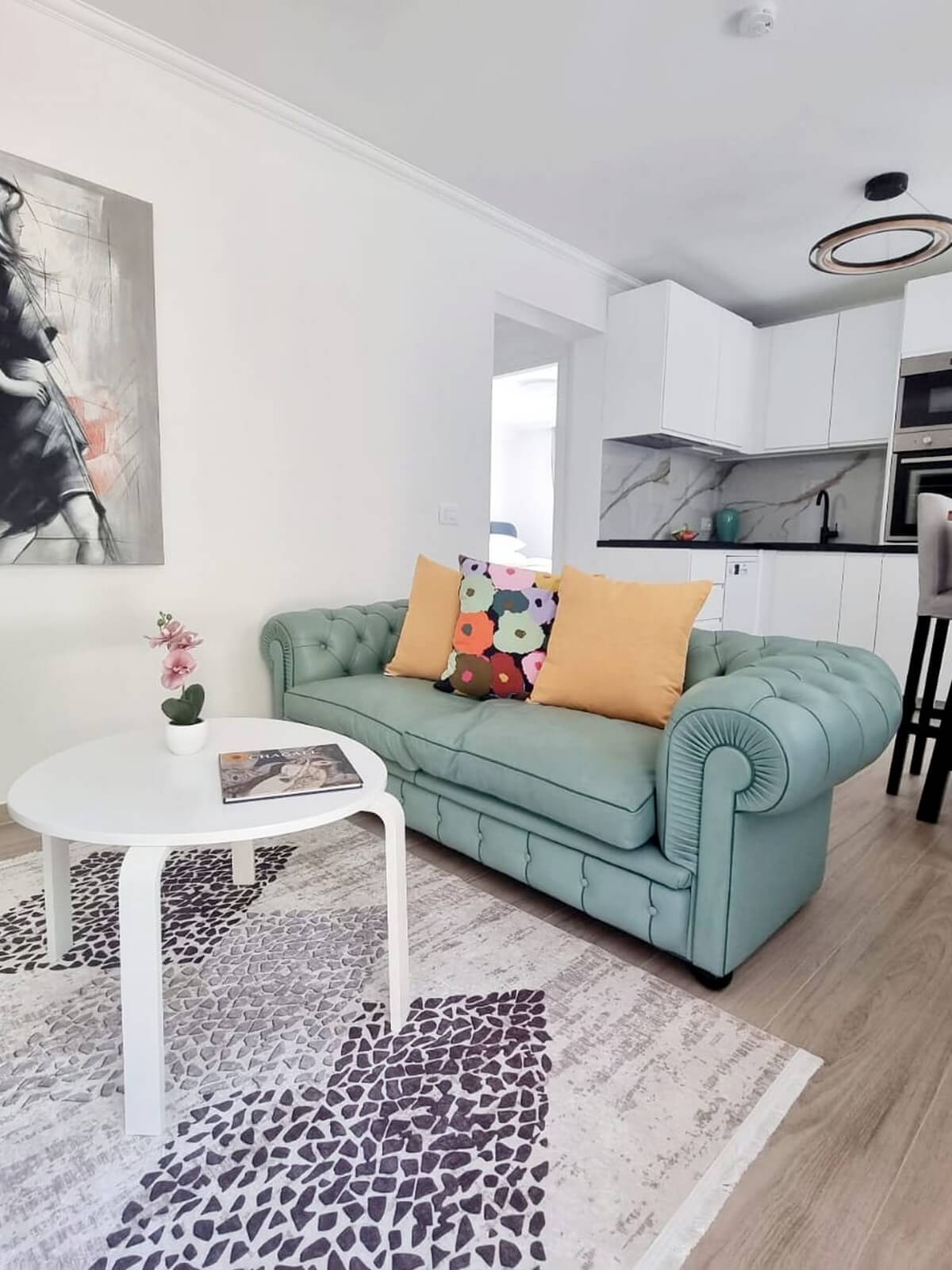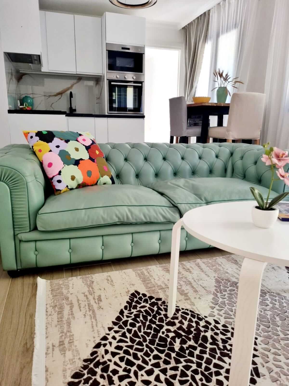 L’appartement est composé d’une chambre avec 1 lit double en 160×200 et d’un canapé-lit dans la deuxième chambre, en 140×200.